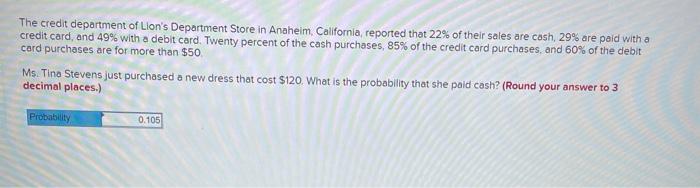 Solved The Credit Department Of Lion S Department Store In Chegg Com